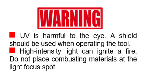 A: Transparent plastic blocks 365nm UV light. Therefore one needs to choose an epoxy that can be cured at 450nm and choose the matching head.